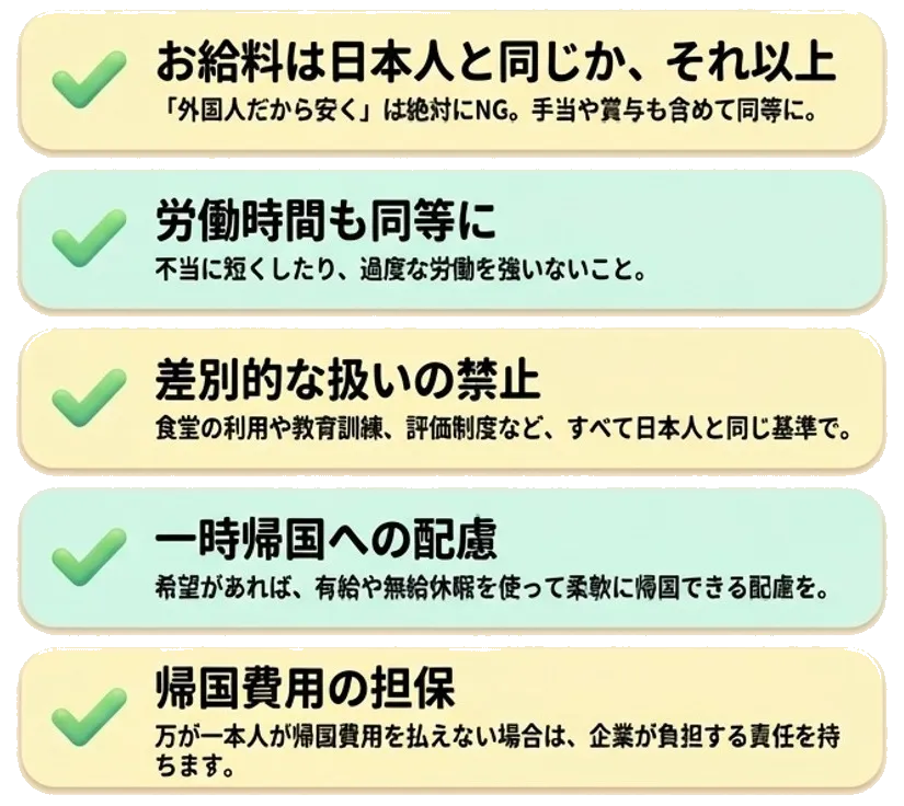 特定技能の在留資格に係る制度の運用に関する基本方針から、受入れ機関(特定技能所属機関)又は登録支援機関は、1号特定技能外国人への支援計画を策定・実施しなければなりません。